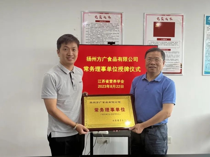 揚州方廣食品有限公司積極支持、參與學會活動,重視營養學術,努力提高科研水平,并且以高標準嚴要求的生產環境,科學嚴謹的生產工藝流程管理,先進的生產設備和技術,來確保產品的營養與安全。2023年8月經過學會考察,決定授予揚州方廣食品有限公司常務理事單位,并舉行了授牌儀式,鼓勵其再接再厲,努力成為行業表率。