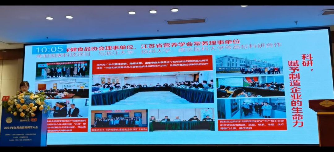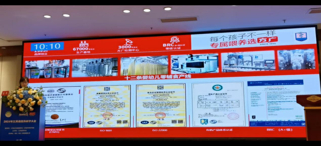 江蘇省營(yíng)養(yǎng)學(xué)會(huì)承辦或協(xié)辦的營(yíng)養(yǎng)科學(xué)大會(huì),一直以來(lái)是營(yíng)養(yǎng)科技工作者、醫(yī)生等熱烈參加的營(yíng)業(yè)科學(xué)盛會(huì),方廣積極參與和支持各類(lèi)營(yíng)業(yè)科技學(xué)術(shù)活動(dòng)。在去年的2023長(zhǎng)三角營(yíng)養(yǎng)科學(xué)大會(huì)上,著名兒童營(yíng)養(yǎng)專(zhuān)家盛曉陽(yáng)教授做了“肉泥作為嬰兒首選輔食研究”報(bào)告,與大家分享新版《中國(guó)居民膳食指南》中建議嬰兒輔食中首選添加肉泥、肝泥、強(qiáng)化鐵的嬰兒谷粉等富鐵的泥糊狀食物的意義,尤其是重視添加肉泥類(lèi)食物,主要是為了引起家長(zhǎng)對(duì)肉泥類(lèi)輔食補(bǔ)充鐵和其他優(yōu)質(zhì)微量營(yíng)養(yǎng)素的重視,改變輔食就是米粉的錯(cuò)誤理念,為嬰幼兒喂養(yǎng)提供科學(xué)指導(dǎo)。當(dāng)事,盛曉陽(yáng)教授講課中例舉了方最新研發(fā)的嬰幼兒肉泥系列產(chǎn)品,適合作為嬰兒輔食使用。