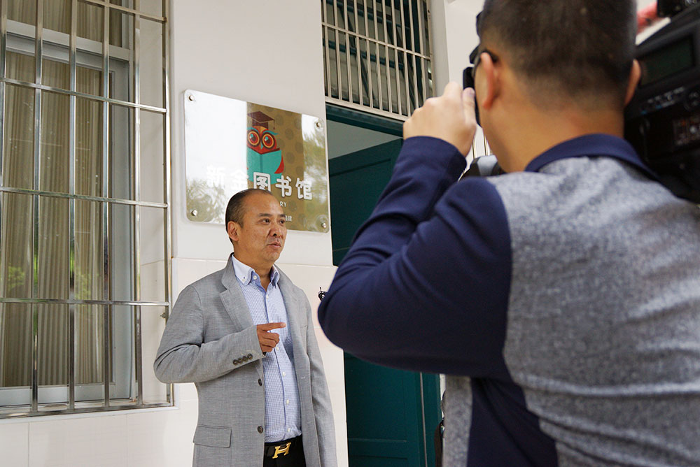 在參觀“新金圖書館”時,鄭新金還接受了聞訊趕來的永泰縣廣播電視局媒體記者的采訪。